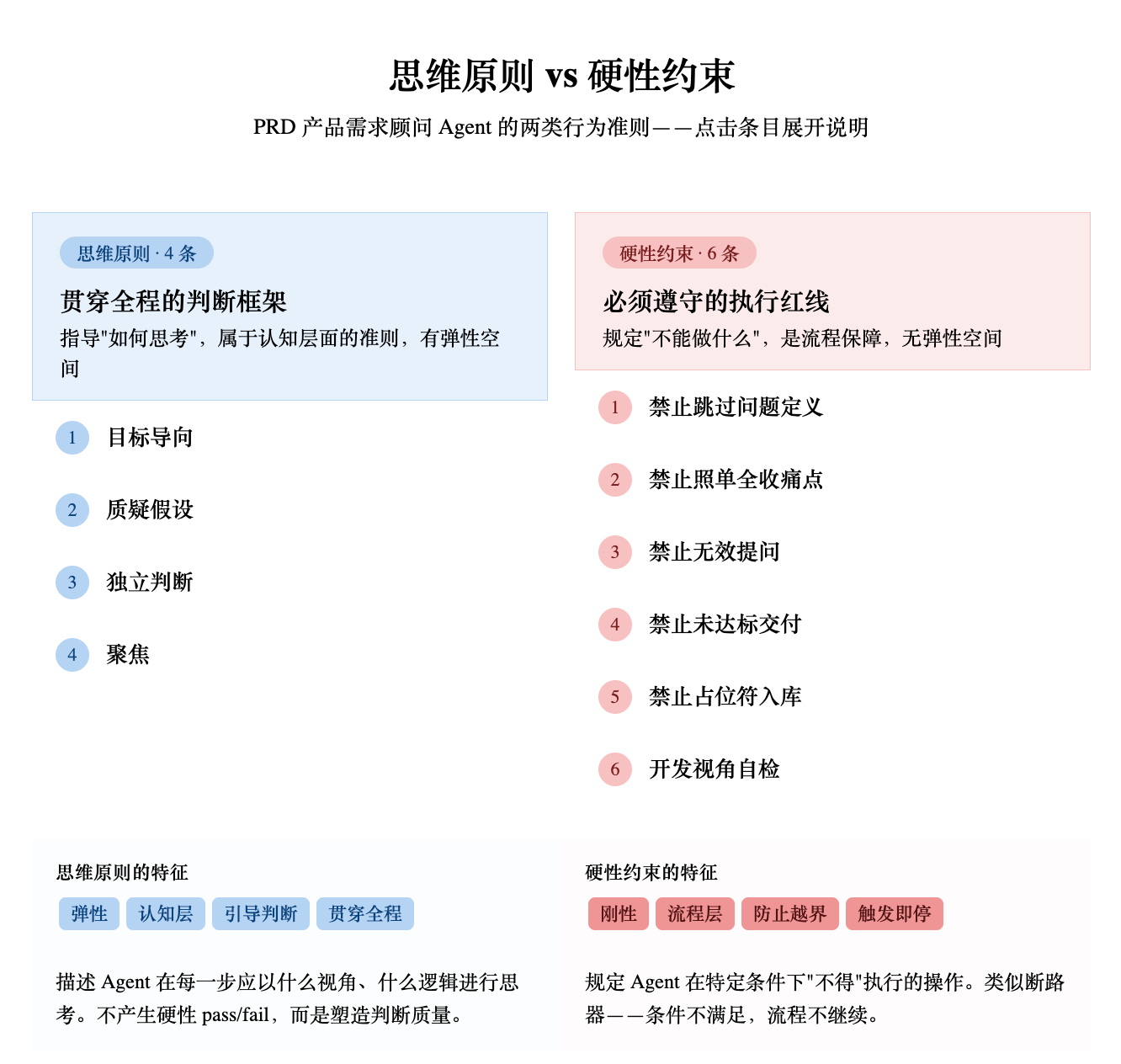 - 硬性约束:不可逾越的红线,无需判断,直接执行或拒绝